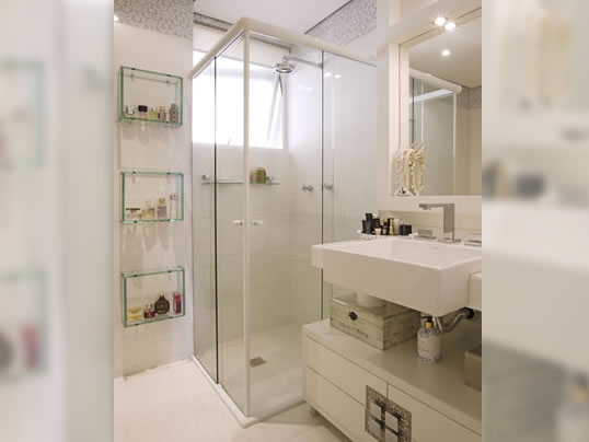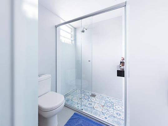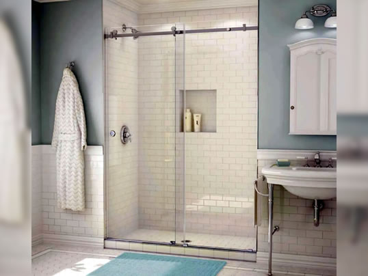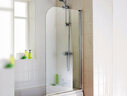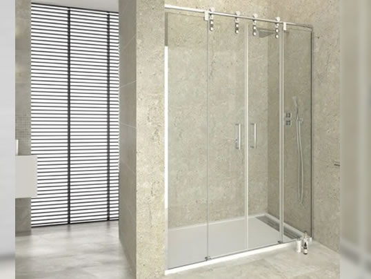 Mamparas de hoja rebatible con cierre parcial del espacio de ducha.